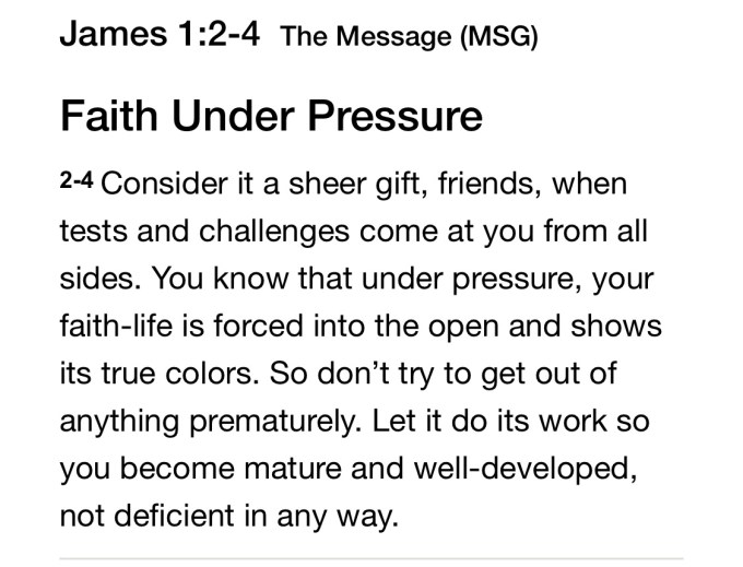 We don’t always want to hear that verse from James that reminds us to consider it “all joy” when trials come our way.
