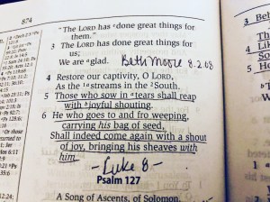I picked up a book that I originally started on July 21 (btw, I date things). I like to track when and where the Lord showed me something.